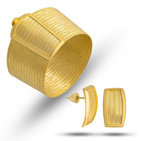 Modaya uyumlu şekilde tasarlanan gümüş trabzon hasır kadın set modellerini hem gündelik yaşantınızda hem özel gün ve gecelerinizde şık bir şekilde kullanabilirsiniz. Yenilikçi her yaştan kadının beğenisine hitap eden ürünlerle kombinlerinizi tamamlayabilirsiniz.Bu şık set; doğum günü hediyesi, sevgililer günü hediyesi veya özel günlerde tercih edilebilecek mükemmel bir seçenektir. Gümüş trabzon hasır kadın set 925 ayar gümüşten imal edilmiştir.Bu set üzerinde gold kaplama vardır ve 15 sıra dizilimlidir. Gold kaplama yapılan ürünler parlaklığını uzun süre muhafaza eder, oksitlenmesini geciktirir. Tüm gümüş kadın set modellerinde olduğu gibi gümüş trabzon hasır kadın set modeli de el emeği ile üretilmiştir. Gümüş ve değerli taşlar nedeniyle belirtilen ortalama ürün ağırlığında ± %10 sapma olabilmektedir.